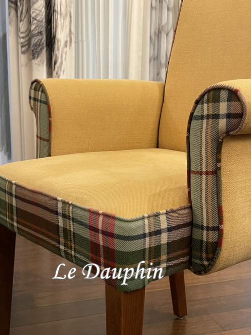 無地とチェックの組み合わせをアレンジしたラルフローレンチェア