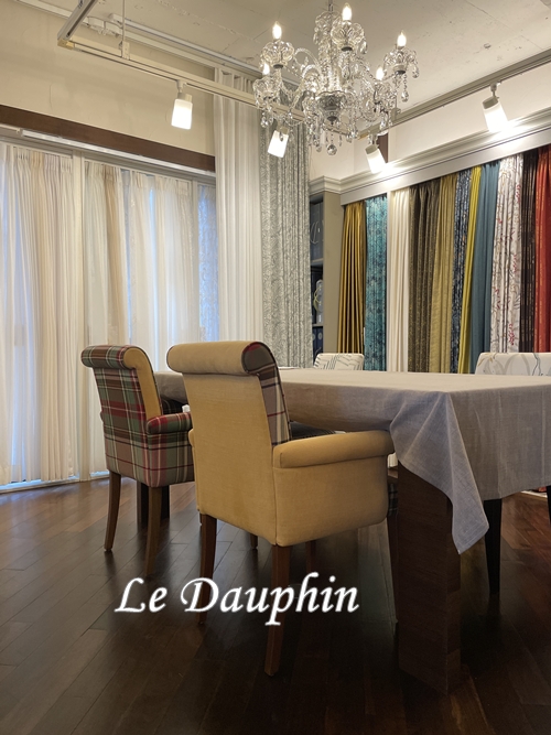 ル・ドファン自由が丘店では、新作生地を実際に見て触れていただけるよう、店頭ディスプレイを新作コレクションで彩っております。