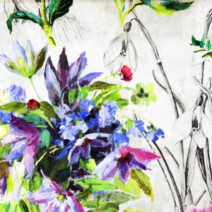図鑑に収録された植物や昆虫を最新技術のデジタルプリントで表現しています。