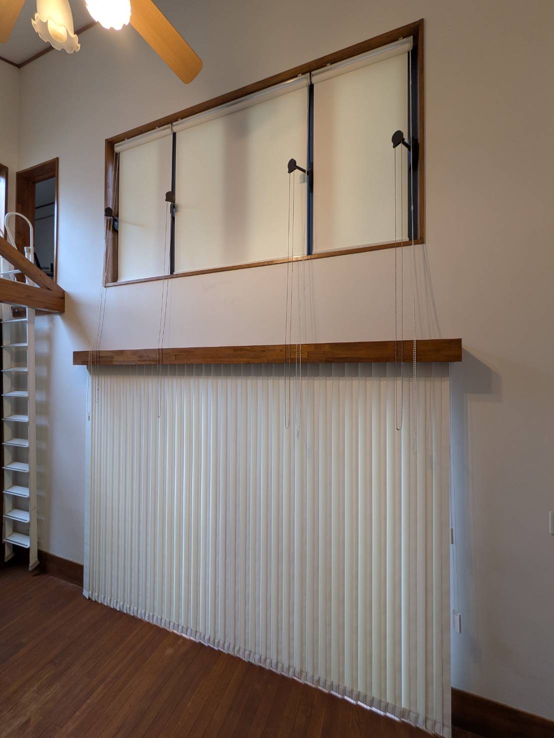 (使用しないときは下の窓のカーテンボックスの上に隠して置いておけます)