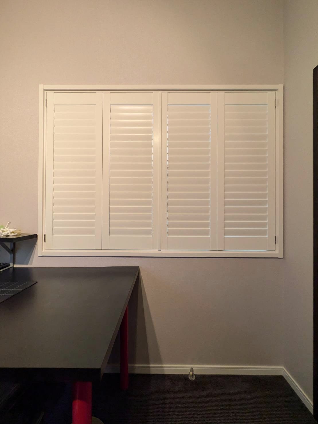 当店はカーテン・ブラインド・シャッターなど窓まわり専門の施工販売店です。今回のようなノーマン社製ウッドシャッターの2枚戸・4枚戸の複数パターン製作にも柔軟に対応しております。