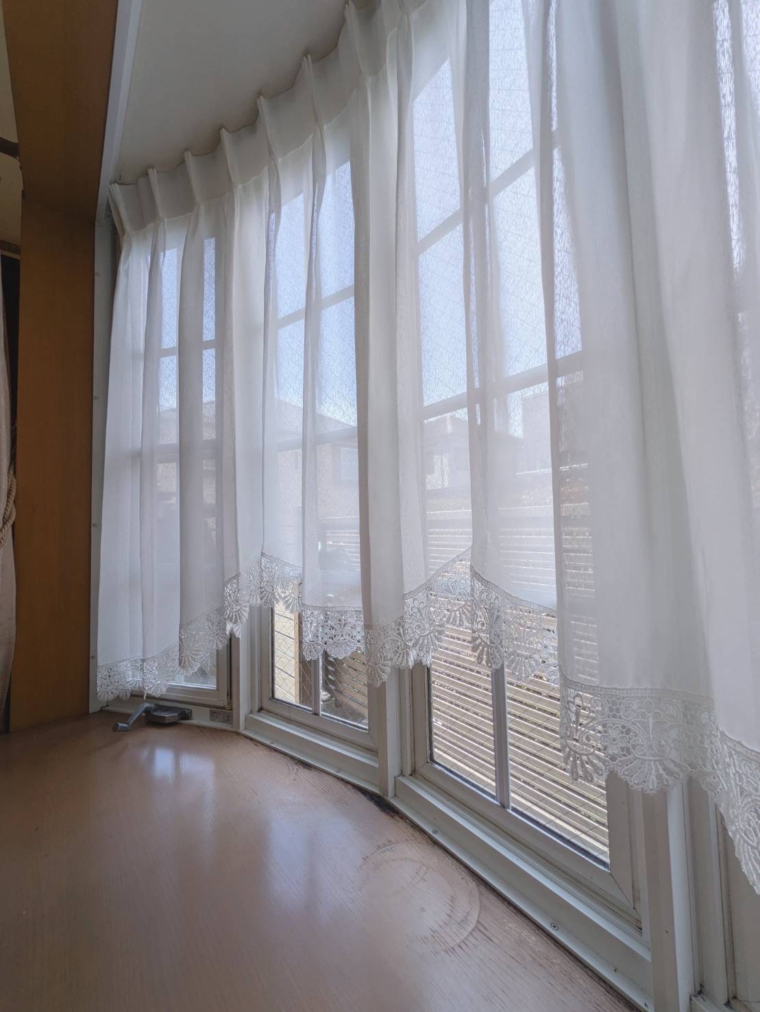 3. 窓辺を明るく演出 新しいレースカーテンに替えたことで、生地の美しい透け感が蘇り、自然光を柔らかく取り込む心地よい窓辺が完成しました。