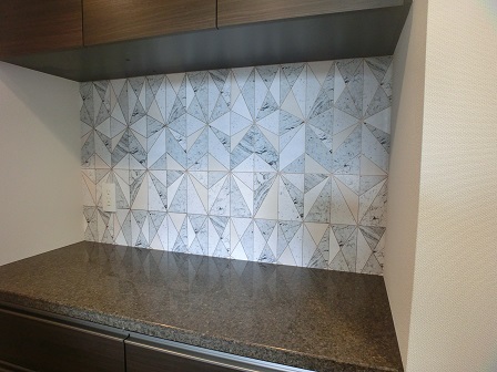 下の写真が、残りの壁紙を使用して貼ったキッチンのニッチです。